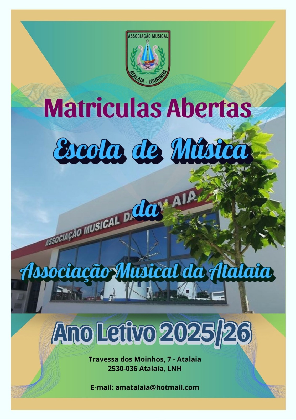 Estão abertas as matriculas 2025/2026 para a Escola de Música da Associação Musical da Atalaia